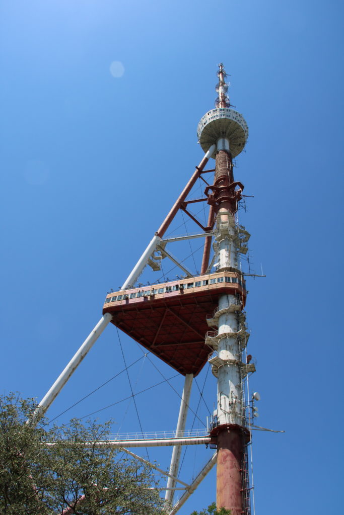 Am nächsten Tag machten wir uns mit der Standseilbahn auf in Richtung Mtazminda . Von hier aus hat man eine hervorragende Sicht über ganz Tiflis. Wir ließen es uns natürlich nicht nehmen, auch hier eine Riesenradfahrt zu machen, um den Ausblick besonders zu genießen. Der nebenstehende Fernsehturm (274,5 Meter) ist nach einem Feuer im Jahr 2004 leider nicht mehr für Besucher freigegeben, so konnten wir dieses imposante Stahlkonstrukt nur vom Boden aus betrachten. Auf dem Berg hat sich weiterhin ein Vergnügungspark etabliert und wir machten unter anderem eine Fahrt mit der Geisterbahn – gruselig!