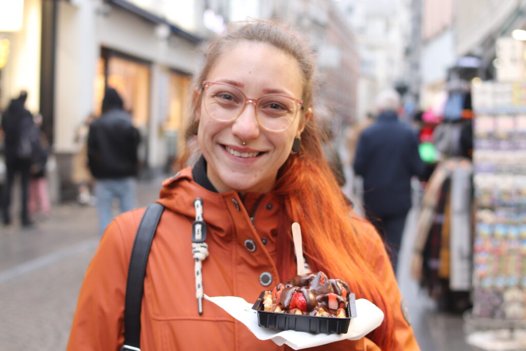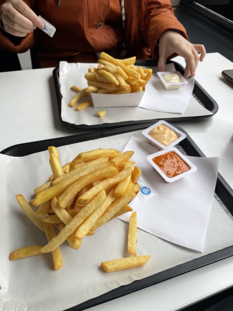 Unser Wissenshunger war zunächst gestillt, aber nun sollte auch der Magen etwas beruhigt werden. Wir kehrten auf dem Rückweg bei einem kleinen Kiosk ein und aßen die nächste belgische Spezialität