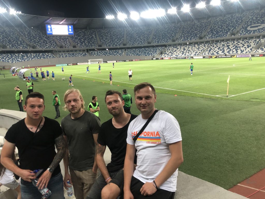 Nach getaner Arbeit gönnten wir uns ein Glas Wein und machten uns langsam auf in Richtung Dinamo Arena. Der hiesige Verein Dinamo Tiflis (Georgischer Rekordmeister; Platz 4 der ewigen Tabelle der UdSSR) spielte in der Qualifikationsrunde der UEFA Europa League. Gegner war der kleine Verein UE Engordany aus Andorra. Die Verhältnisse auf dem Platz waren sofort klar und Dinamo gewann das Spiel klar mit 6:0. Wir machten noch Bekanntschaft mit einem georgischen Journalisten, welcher in höchsten Tönen von Jogi Löw, Bayern München und Deutschland im Allgemeinen sprach.