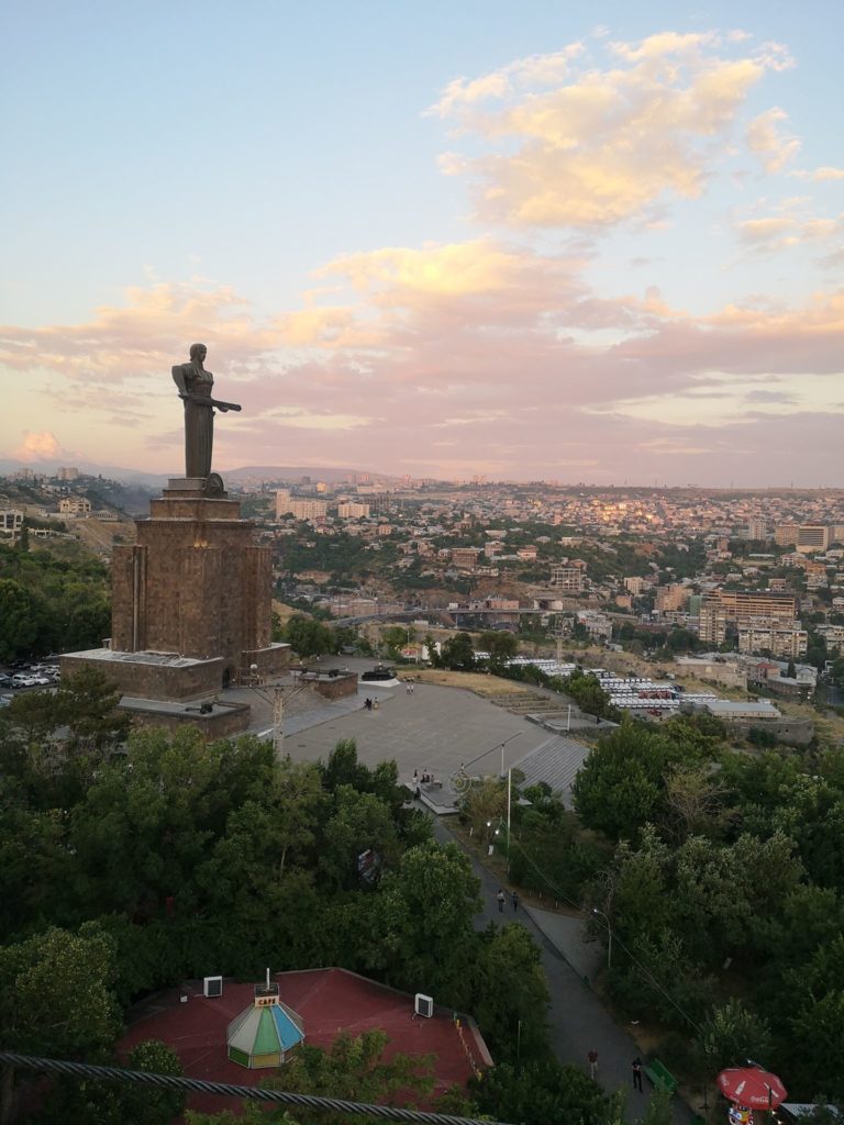 Wir erreichten Eriwan am frühen Nachmittag des Donnerstags. Über Airbnb hatten wir noch vor Abfahrt in Gyumri eine ansehnliche Unterkunft gebucht. Einziges Manko: Fünftes Stockwerk und kein Aufzug, sonst aber sehr angenehm. In der Unterkunft konnten wir uns erfrischen, Stoffi und ich besuchten noch einen Barbier, welcher uns rasierte. Später machten wir uns auf zum Mother Armenia Denkmal. Von hier hatten wir einen schönen Ausblick auf die Stadt und machten eine Riesenradfahrt.