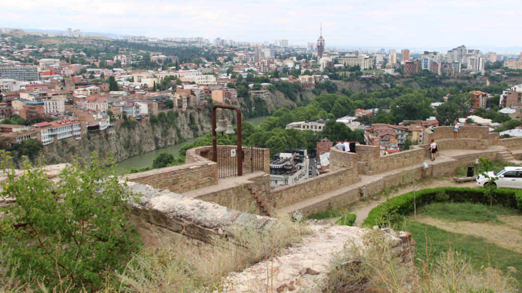 Danach fuhren wir mal wieder mit einer Seilbahn, ziemlich modern sogar. Kein Vergleich zur Nostalgie-Fahrt von Khulo. Die Seilbahn führte uns zum Gipfel des Sololaki und wir konnten die dortige Festung, sowie die Mother of Georgia besichtigen.