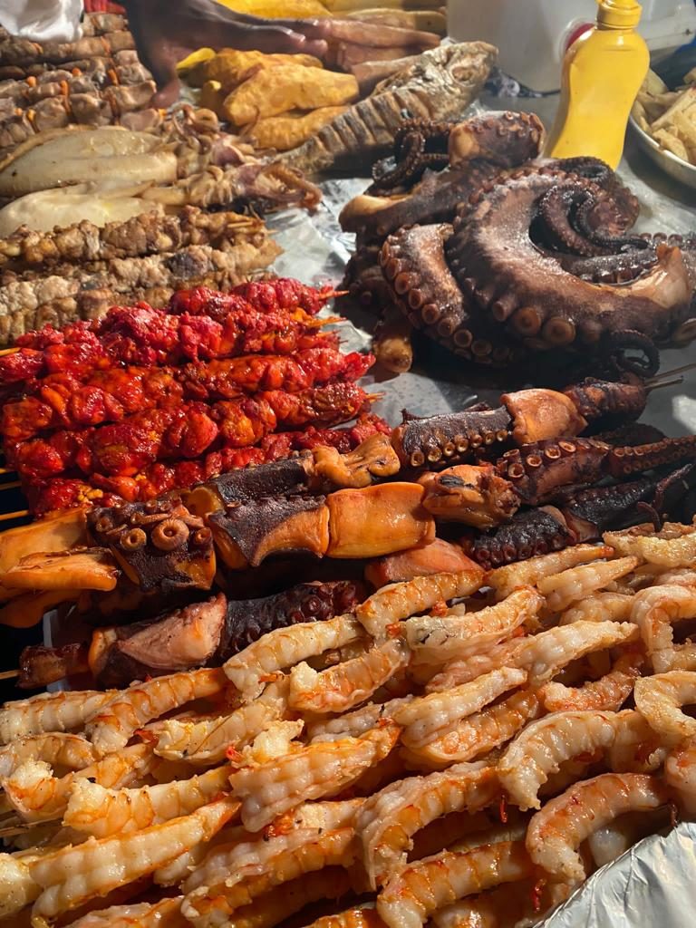 Den Sonnenuntergang verfolgten wir vom Pool, welcher auf dem Dach des Hotels platziert war. Abendessen gab es auf dem Night Food Market, gleich um die Ecke gelegen. Gefühlt hundert Garküchen locken mit Fleisch, Meeresfrüchten, Fisch usw. Die Zubereitung erfolgt direkt vor den Augen – äußerst köstlich. Damit ließen wir den Abend ausklingen.