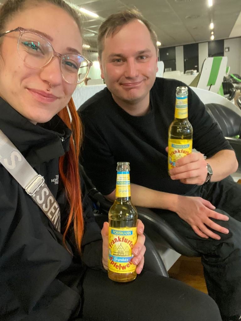 Am Mittwoch ging es dann los. Mit dem Bus in Gö zunächst bis zum Hauptbahnhof. Dort einen ICE 4 bestiegen und mit kurzem Umstieg in FFM Hauptbahnhof ging es auch gleich zum Flughafen. Checkin, Gepäckabgabe und auch die Kontrolle aller Reisedokumente lief vollkommen problemlos ab. Da die Wartezeit in Frankfurt großzügig bemessen war blieb noch etwas Zeit und wir gönnten uns einen Bembel – Man sollte ja immer lokal genießen!