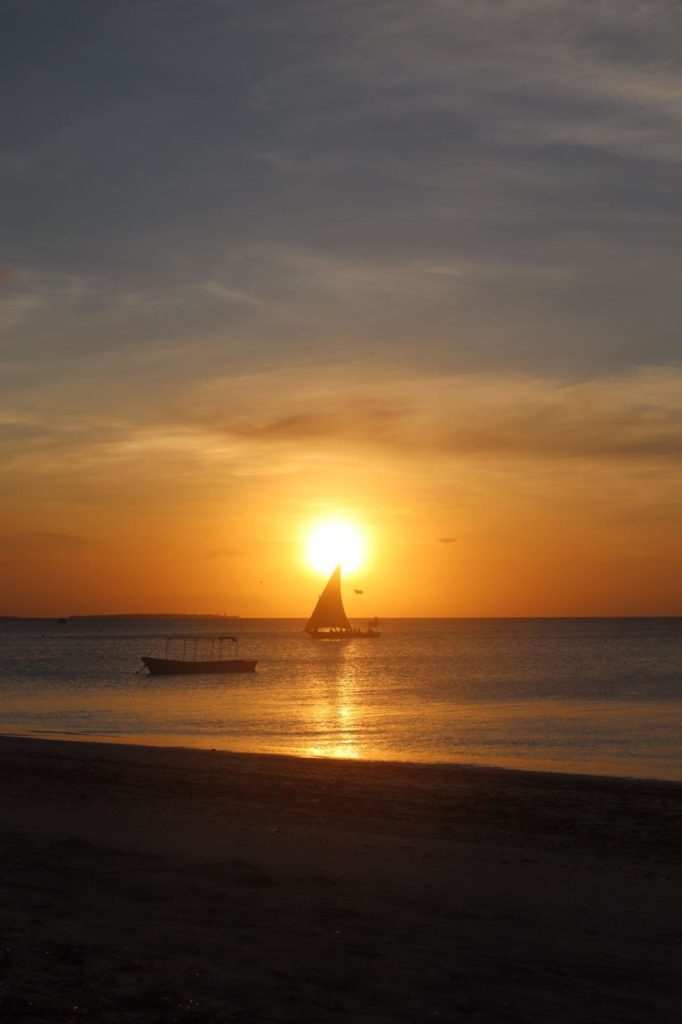 Wir erreichten Nungwi gegen Mittag und konnten auch direkt in das Hotel einchecken (Greens Nungwi). Unterkunft einwandfrei, sämtliche (Küchen-)Utensilien standen der Allgemeinheit zur Verfügung. Wie gehabt passiert am Reisetag natürlich nicht mehr all zu viel… Am späten Nachmittag gingen wir in Richtung Strand und verfolgten den malerischen Sonnenuntergang – am genau so malerischen Sandstrand.