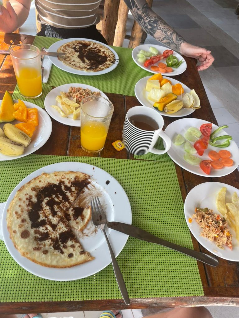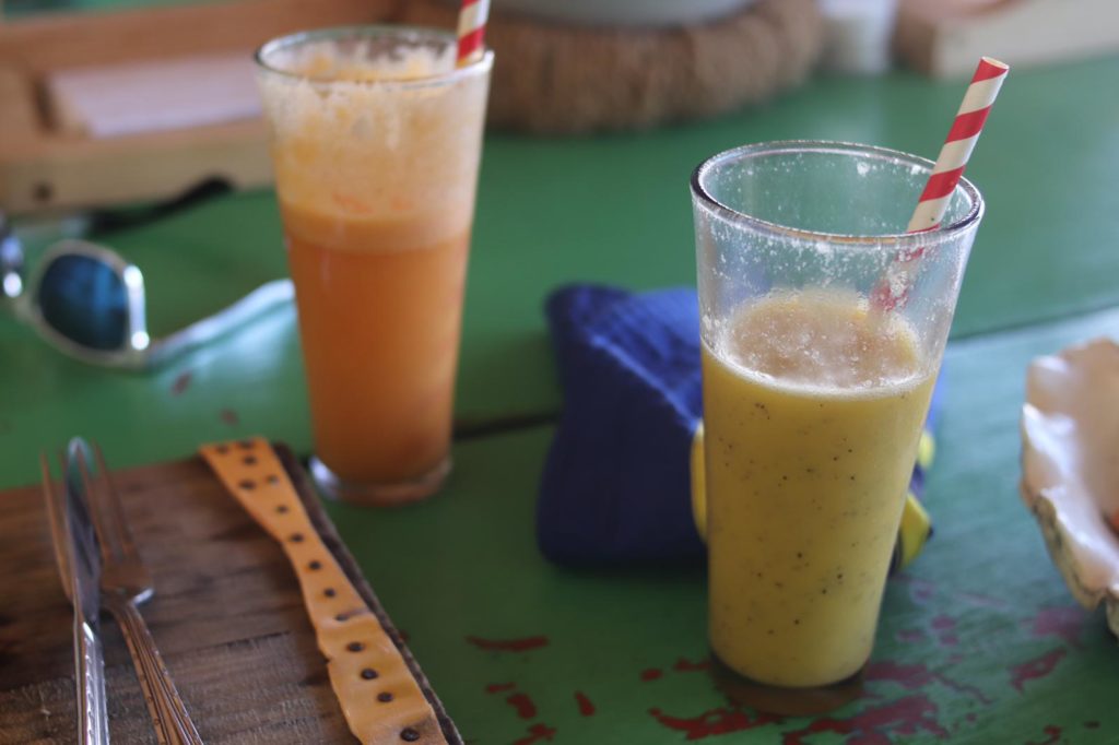 Nachmittags kehrten wir im Sativa Cafe ein. Es gab jeweils einen wunderbaren frisch zubereiteten Smoothie und eine Bruschetta als Snack. Der Laden bietet ausschließlich vegane Speisen an, hat aber absolut fantastisch geschmeckt. Wenn man mal in Paje ist, sollte man hier essen.