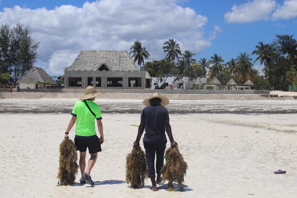 Tagsdrauf besuchten wir das nahegelegene Seaweed Center Mwani. (Interessanterweise stellte sich später heraus, dass unser Airbnb-Host der dortige Geschäftsführer ist). Gemeinsam mit einem Guide machten wir einen Ausflug zum Strand. Es herrschte gerade Ebbe, so machten wir quasi eine Wattwanderung. Wir warfen einen Blick auf die Anbaugebiete der Algen, schauten den Frauen (Ausschließlich Frauen!) bei der Ernte zu und probierten auch direkt mal Algen. Nach der Ernte werden die Algen getrocknet und anschließend in verschiedenen Verfahren weiterverarbeitet. Z.B. getrocknet gemörsert zu einer Art Salz. Oder aber auch (umfangreicher) mit weiteren Zutaten wie bspw. Bienenwachs zu Seifen oder weiten Hygiene- und Kosmetikartikeln veredelt.