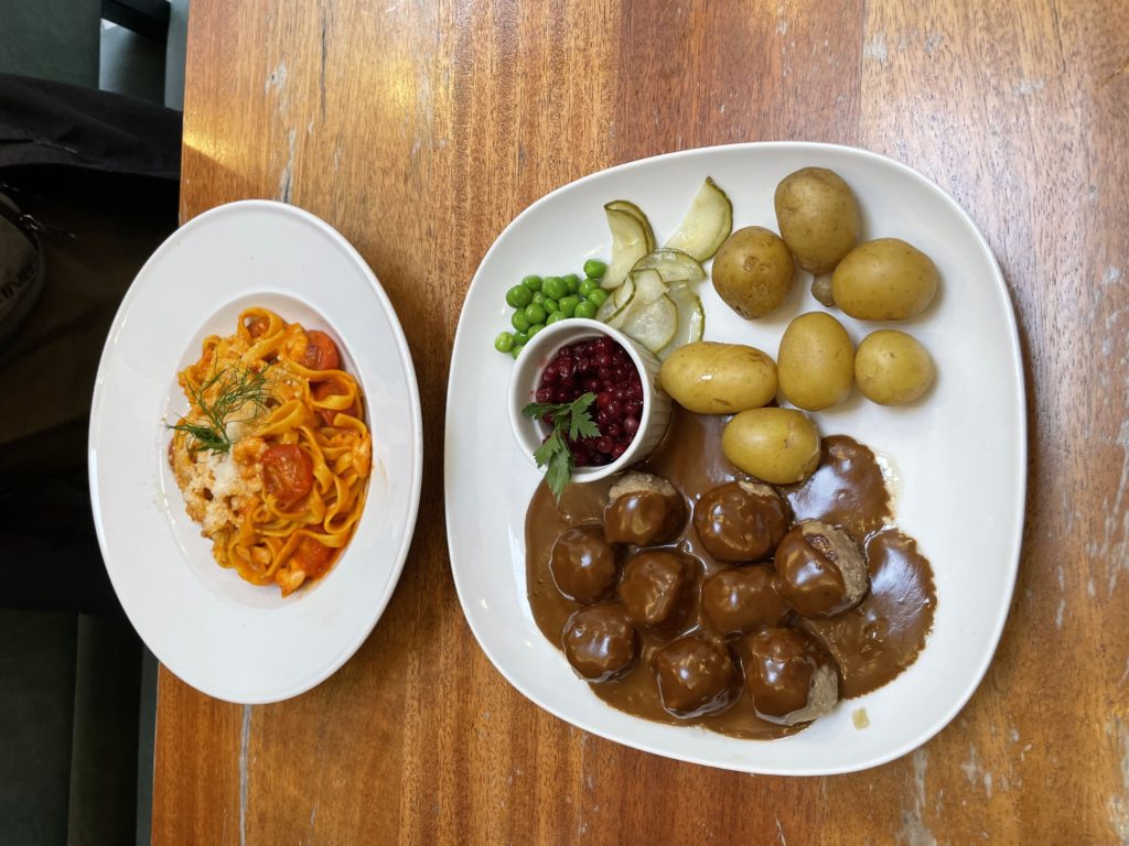 Anschließend haben wir übergesetzt in Richtung Gamla Stan (Altstadt). Allgemein ist alles sehr gut zu erlaufen, somit waren auch die ersten Eindrücke in der Altstadt wunderbar. Zahlreiche Museen standen auf unserer Agenda. Freitagabend dann direkt das erste. Was verbindet der Wissenschaftler wohl als erstes mit Stockholm? Richtig, den Nobelpreis. Im Nobelpreismuseum lernten wir viel über vergangene Preisträger, aber auch genau so viel über die Preisverleihung an sich, sowie das alljährliche Bankett. Danach nahmen wir ein Abendmahl in dem nächstbesten Restaurant wahr. Für mich gab es Köttbullar, für Sr. Lori gab es Pasta mit Scampis.