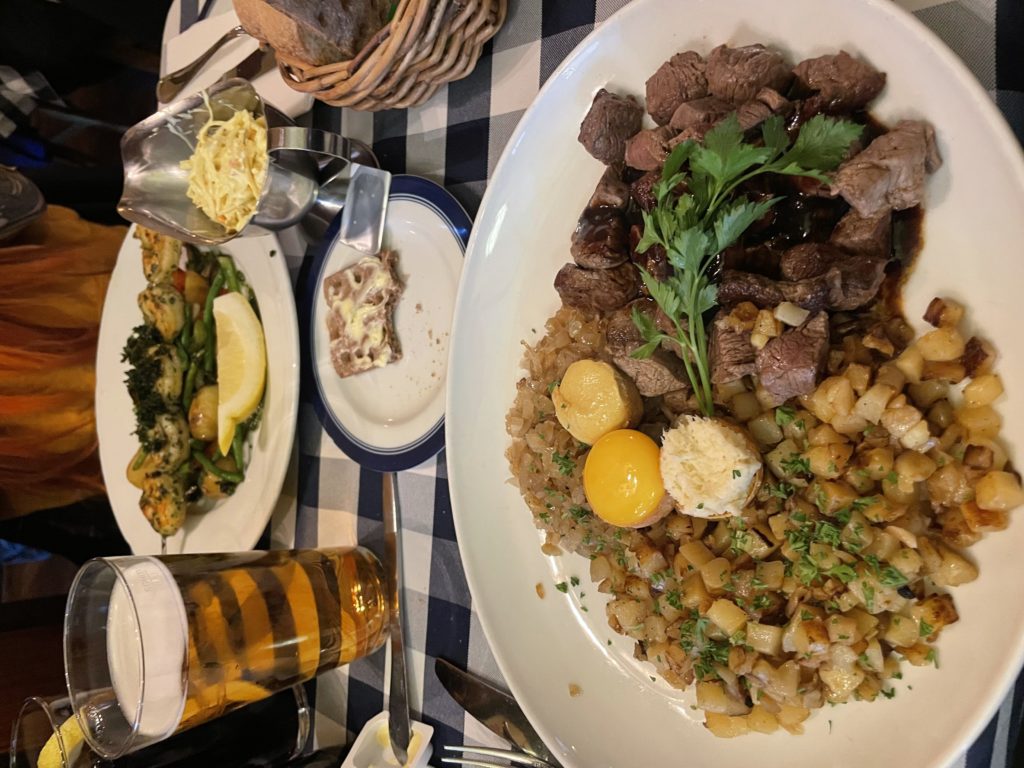 Am Abend gönnten wir uns mal wieder ein umfangreiches Abendmahl im „Gefangenen des Kaukasus“