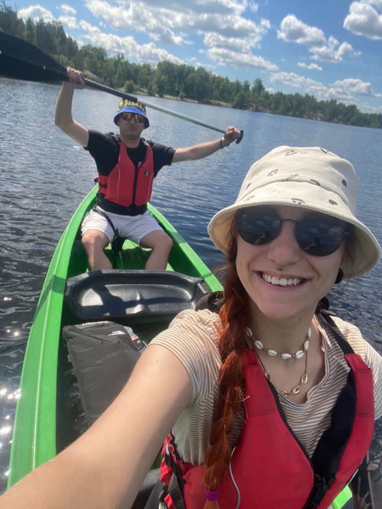 Dienstag, 21. Juni – Sommersonnenwende. Dazu noch Geburtstag meiner Mitreisenden und gleichzeitig geliebten Freundin Schwester Lori. Wir haben ein letztes Mal das reichhaltige Frühstück im Hotel genossen, Taschen gepackt und gingen zum Check-out über. Gepäck konnten wir zum Glück hier im Hotel noch bis zum Abend aufbewahren. Für uns ging es dann in die Natur. Gerade mal 15 Minuten mit dem Bus entfernt (Die Bushaltestelle war ebenfalls in unmittelbarer Nähe zum Hotel) findet man eine herrliche Idylle als Auszeit zur Großstadt: Hellasgården. Wir hatten wundervolles Wetter, so konnten wir uns voll und ganz auf Outdoor-Aktivitäten einstellen. Im Minigolf zog ich heute leider den Kürzeren. Nach 18 Löchern musste ich mich mit 61 gegenüber 55 Schlägen geschlagen geben. Beim Kanufahren mussten wir dann aber miteinander agieren. Das klappte auch sehr gut und wir schipperten lange Zeit über den See. Ich weiß nicht, ob Hellasgården ein Geheimtipp ist, aber ein lohnender Ausflug ist es allemal!