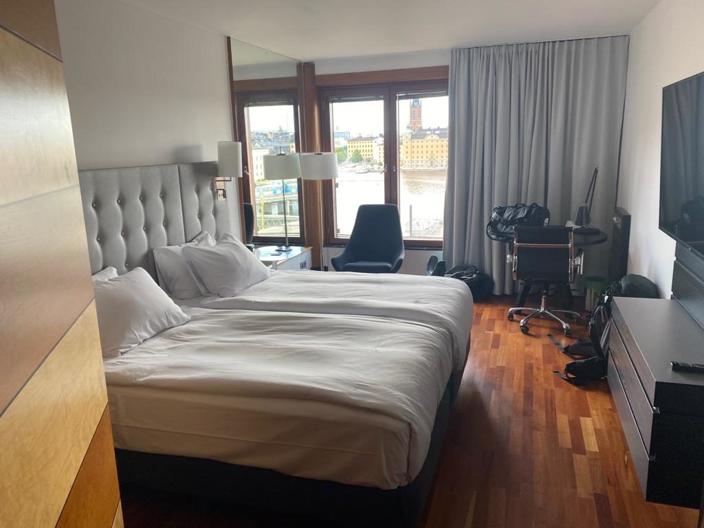 Abgestiegen sind wir im Stadtviertel Slussen im Hilton. Preislich war das echt in Ordnung, aufgrund der aktuellen Verfügbarkeit erlangten wir sogar ein Upgrade in ein Zimmer mit Ausblick in Richtung Altstadt. Unterkunft wunderbar muss ich sagen. Sowas wie bspw. ein Eisspender auf dem Gang der Hotelzimmer machen den kleinen Unterschied aus. Bei einem potentiellen nächsten Städtetrip möchten wir aber darauf achten, dass es einen Pool oder sowas gibt.