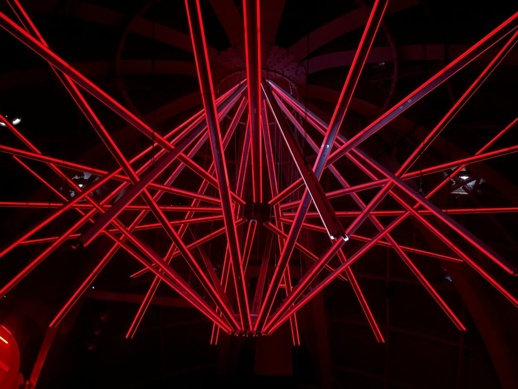 Aussicht von oben. Mini Europa im Blickfeld.Imposante Lichtershow im Inneren