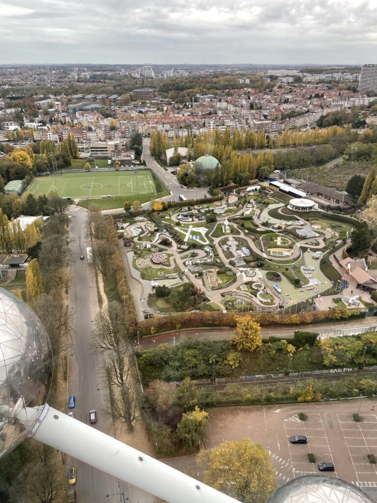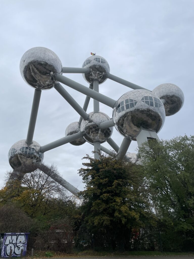Da wir ja sowieso das Ticket für den ÖPNV hatten, fuhren wir nun mit der Tram in Richtung Heysel. Wenn man schon mal in Brüssel ist, sollte man das Atomium zumindest mal betrachtet haben. Als wir davor standen, haben wir uns dann auch spontan für einen Besuch entschieden. Da wir außerhalb großer Ferienzeiten und inmitten der Woche hier sind, hielt sich der Ansturm auch in Grenzen. Zum einen hatte man von der obersten Kuppel des Atomiums eine schöne Aussicht über Brüssel. Zum anderen lernte man in den anderen begehbaren Kuppeln viel über die Errichtung dieses imposanten Bauwerks zur Expo 1958, krönender Abschluss war eine Lichtershow im Inneren. Auch dieser Besuch hatte sich also gelohnt.
