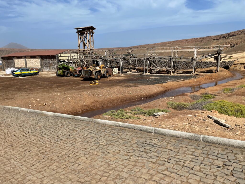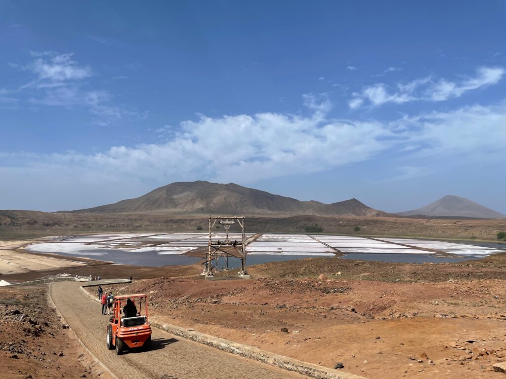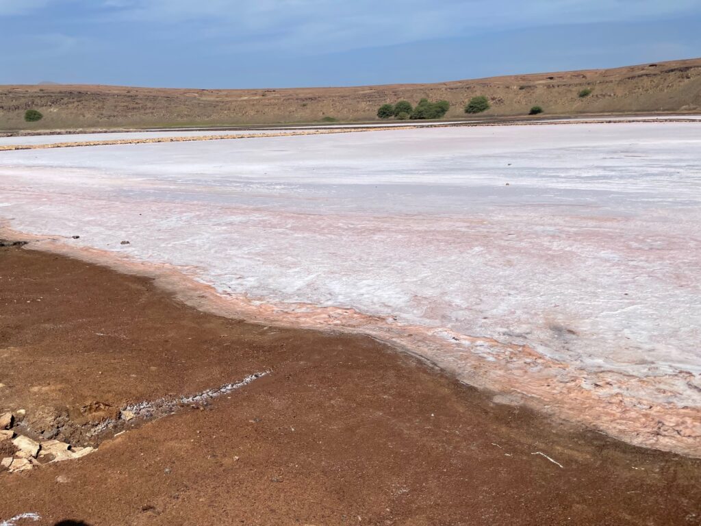 Eines anderen Tages sind wir mit dem Taxi zur Saline nach Pedro Lume gefahren. Hier wird noch aktiv Salz produziert, der Ertrag reicht aber wohl nicht mal zur Deckung des inseleigenen Bedarfs. Als Touri-Attraktion scheint es aber gut zu laufen. Der Salzgehalt im Wasser liegt höher als der des toten Meeres. Man kann sich also mal etwas auf der Wasseroberfläche treiben lassen. Die Therapie wirkt entspannend auf die Haut.