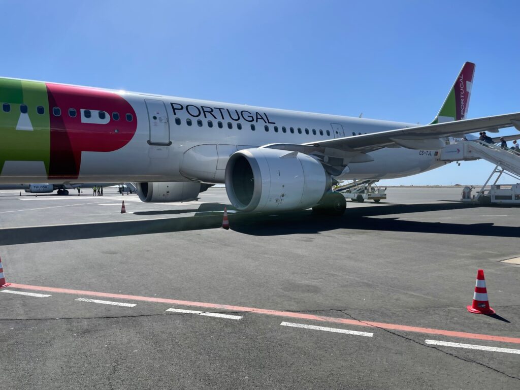 Nun befinden wir uns gerade in 35.000 Fuß Höhe im Flug von Sal nach Lissabon (TP1552). Hier werden wir noch einen Stoppover über Nacht machen, die ansässigen Freunde Jorge und Sandy haben uns zum Abendessen geladen, das können wir natürlich nicht ausschlagen!