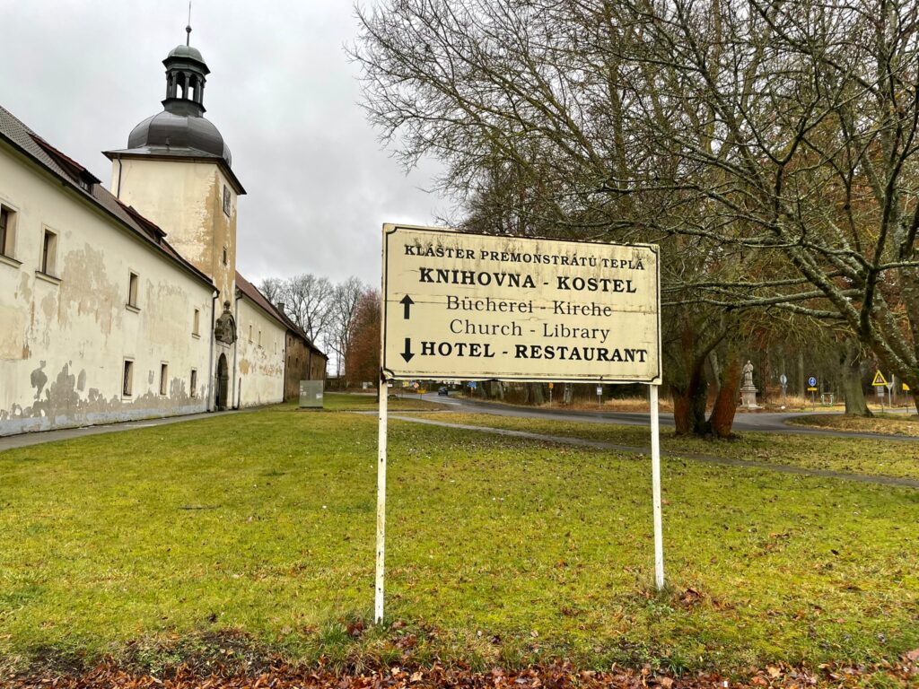 Da wir die Unterkunft am Donnerstag erst gegen 19:45 Uhr erreichten, entschieden wir uns spontan dafür, am Abendbuffet teilzunehmen. Ich hätte zwar lieber nach Karte gegessen, aber wir wollten auch nicht mehr ewig umherirren. Essen war angemessen und auch der Begrüßungsdrink schmeckte. Alt wurden wir aufgrund der Anreise aber nicht mehr und sollten uns nun auf den nächsten Tag konzentrieren. Wir starteten mit einem ausgewogenen Frühstück (Das Frühstücksbuffet ist relativ überschaubar, bietet aber für jeden Geschmack etwas. Hier gibt es keine Minuspunkte). Im lokalen dm und Tesco mussten wir noch ein paar kleine Einkäufe machen. Anschließend fuhren wir mit dem Auto zum Kloster / Stift Tepla. Sah wunderbar aus alles. Der mäßige Niederschlag und die Tatsache, dass hier im Januar nahezu alles geschlossen schien lud somit nur zu einem kleinen Spaziergang von außen ein.