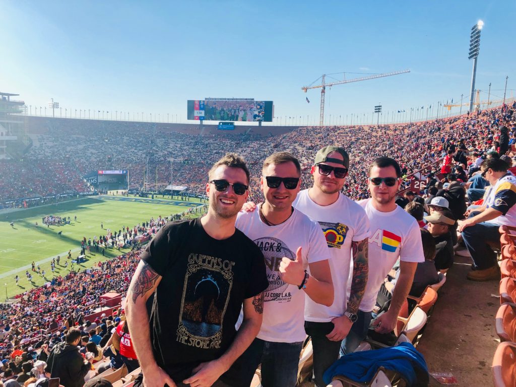 Sonntag, der 30.12. stand ganz im Sinne des American Footballs. Wir hatten Tickets für das Spiel der Los Angeles Rams gegen die San Francisco 49ers erworben. So machten wir uns nach dem Aufstehen direkt auf zum Rams Stadium. Dort angekommen, stellten wir fest, dass das Spiel im Coliseum stattfindet. So kehrten wir um und fuhren zum richtigen Ground. Dort angekommen erlebten wir die großen Parkplatz Pre-Partys der US-Amerikaner.